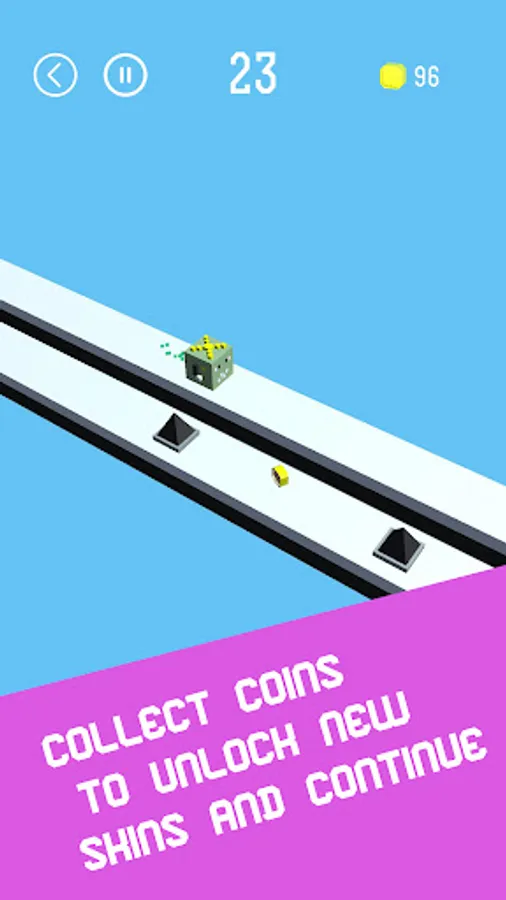 Once you gather some coins, you’ll be also able to buy a different skin for your square jump character. Explore the different skins from the main menu.