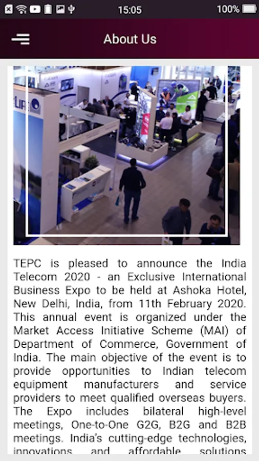 TEPC is pleased to announce the India Telecom 2020 - an Exclusive International Business Expo to be held at Ashoka Hotel, New Delhi, India, from 11th February 2020. This annual event is organized under the Market Access Initiative Scheme (MAI) of Department of Commerce, Government of India. The main objective of the event is to provide opportunities to Indian telecom equipment manufacturers and service providers to meet qualified overseas buyers. The Expo includes bilateral high-level meetings, One-to-One G2G, B2G and B2B meetings. India’s cutting-edge technologies, innovations and affordable solutions including start-ups are demonstrated and on offer to our development partner nations to hasten their ‘digital transformation.’ There is also side by side a conference and parallel interactive session.