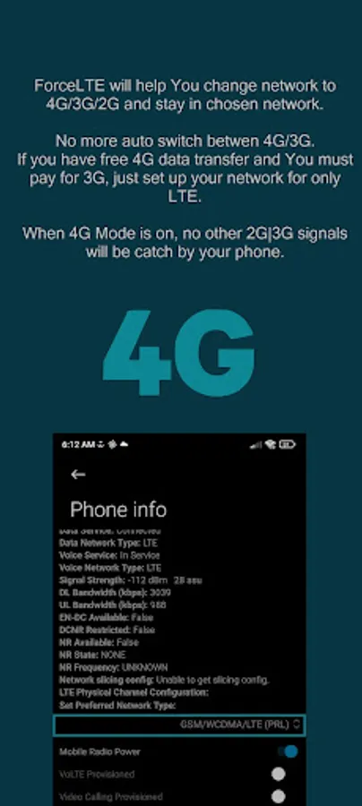 This app will help You change network to 4G/3G/2G and stay in chosen network.