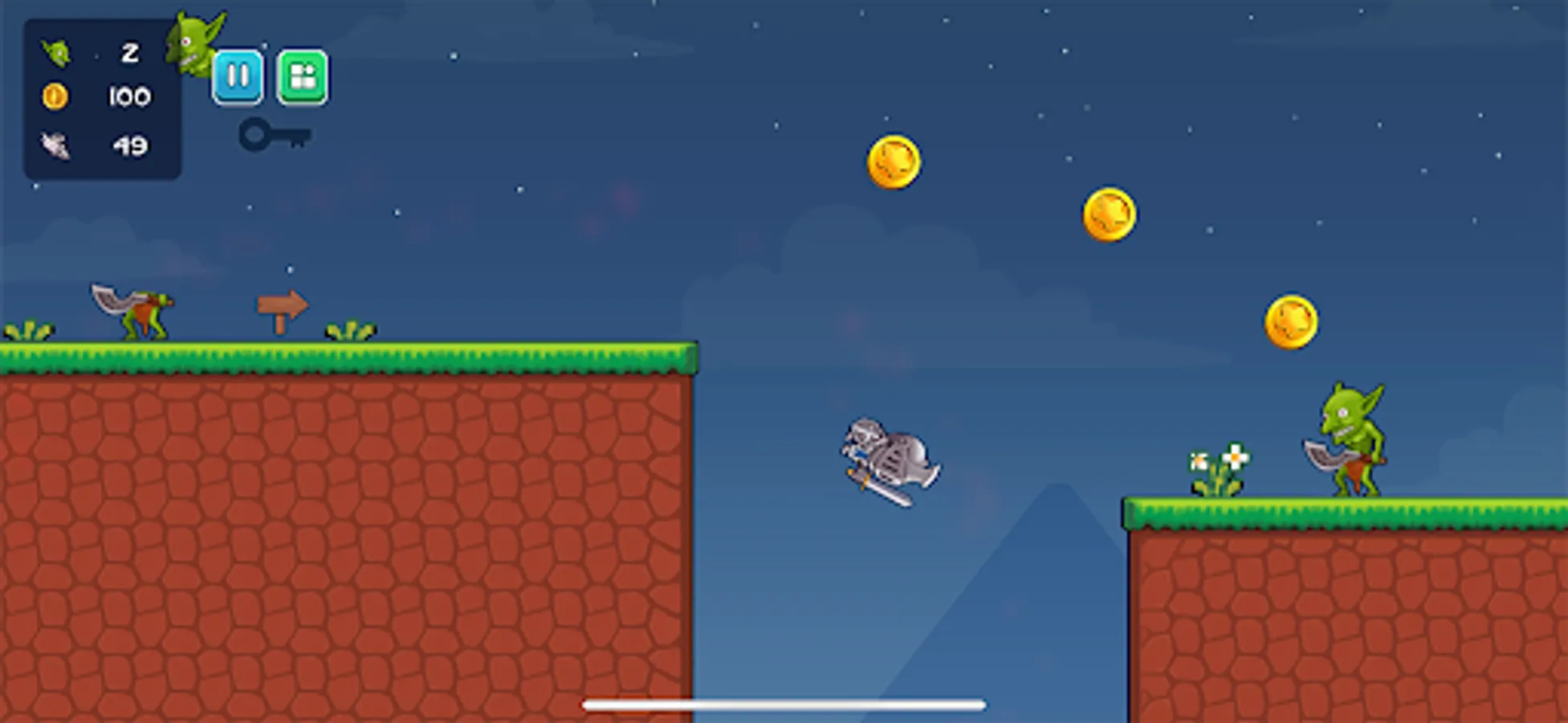 Control the direction of the knight's ejection, eject the knight, and defeat the goblin.