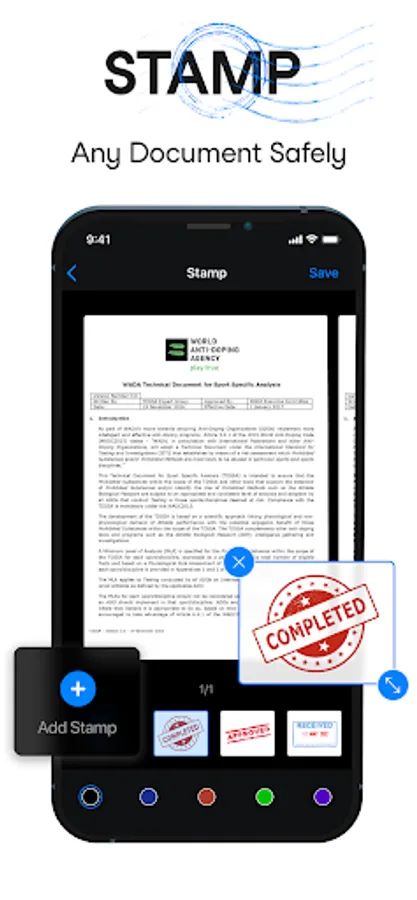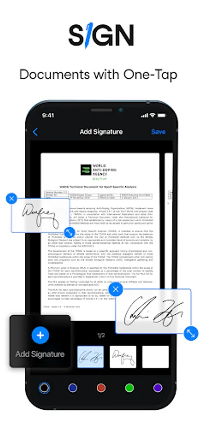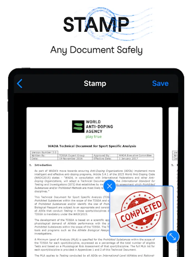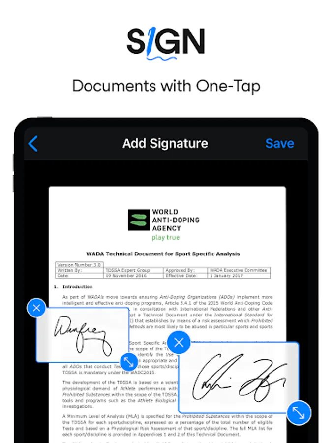 Draw, scan or import your signature and stamp with a simple touch. Sign and stamp any document with just a single tap!