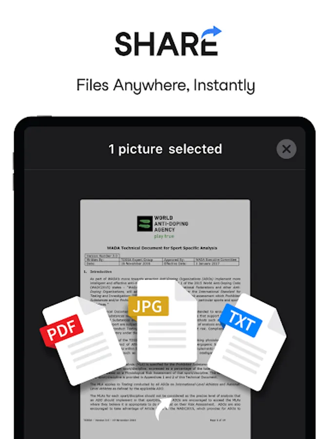Export scans as PDF, JPG, ZIP. Share anytime, anywhere.
