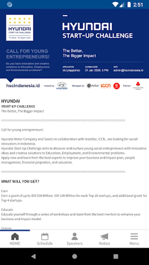 Hyundai Startup Challenge aims to discover and nurture social entrepreneurs with creative solutions on Education, Employment and Environment issues.