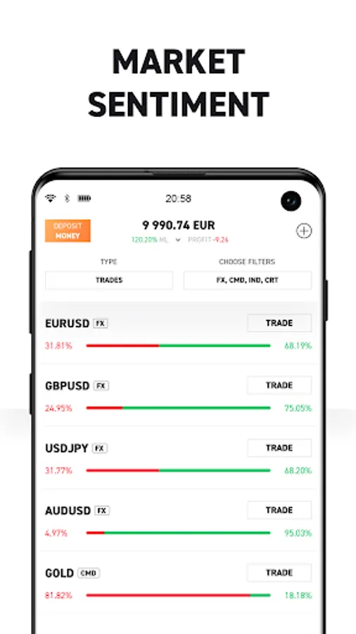 Make a deposit instantly by credit/debit cards like Visa/Mastercard or using services such as PayPal, Skrill, Neteller. Easily transfer funds between sub-accounts in XTB or withdraw to your personal bank account - all safely and securely via the app.