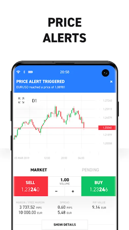 Never miss a new trading opportunity with real time alerts, which send you an alert when the market hits specific price levels set by you.
