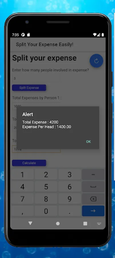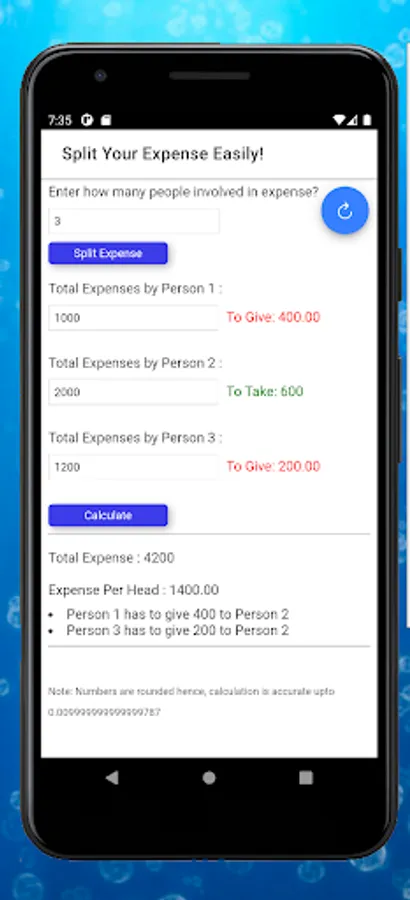- On click of 'calculate' you will see total expense, expense per head & who ows how much to whom.