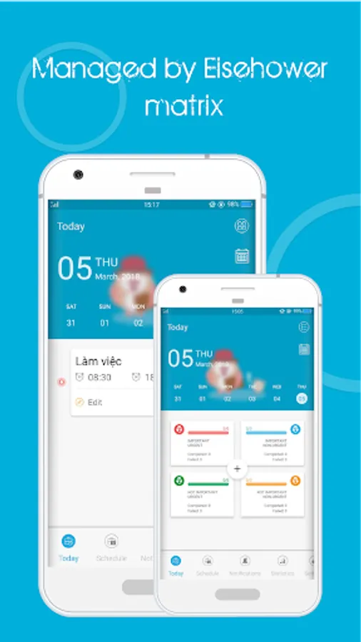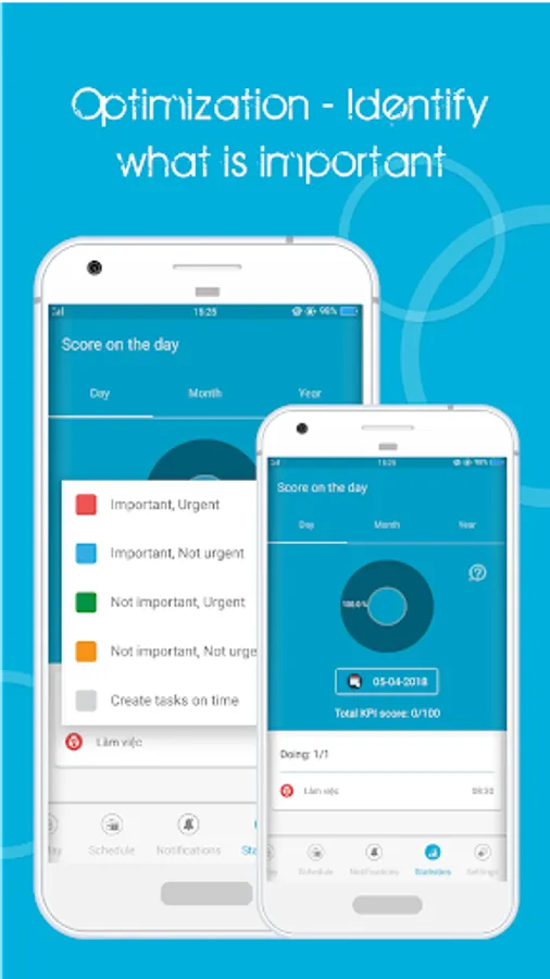 With the "Eisehower" method, you split your work into 4 levels of importance and urgency. The way you split your work into what to do first will optimize your time most effectively. In addition, you can manage your work in both "day" and "recurring" modes (scheduling each day and customizing recurring tasks).