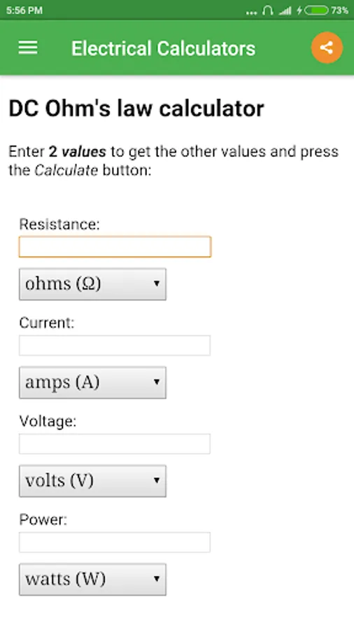 This free app is an electricity calculator, which is able to calculate the most important electrical sizes. You can calculate the Electrical Power, Electrical Resistance, Electrical Charge, Electrical Work and Electrical Current.