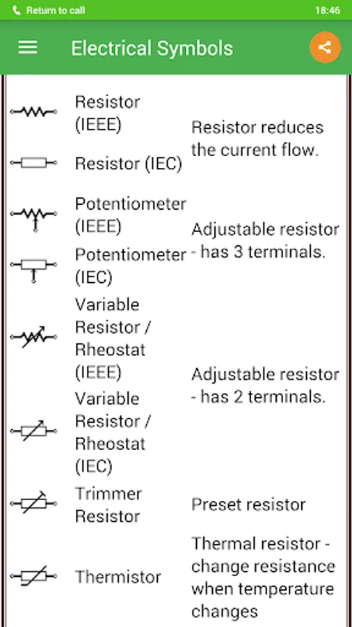 Electrical symbols are used to represent various electrical and electronic devices in a schematic diagram of an electrical or electronic circuit. Electrical student and learner can be known about all Electrical symbols with description using this apps