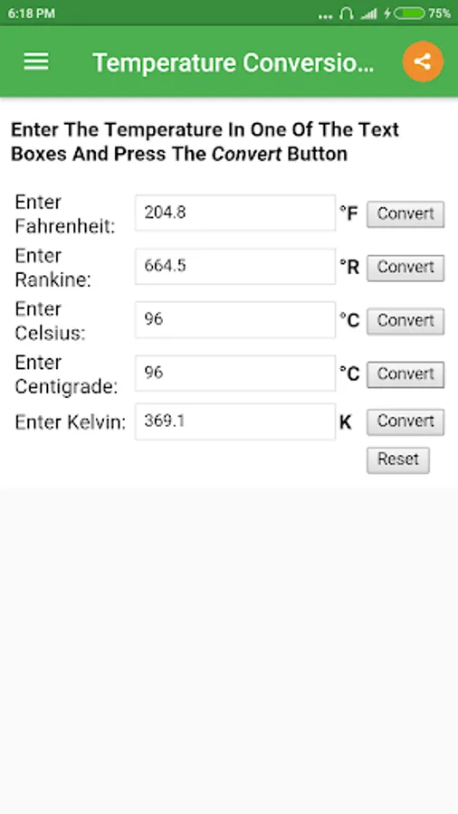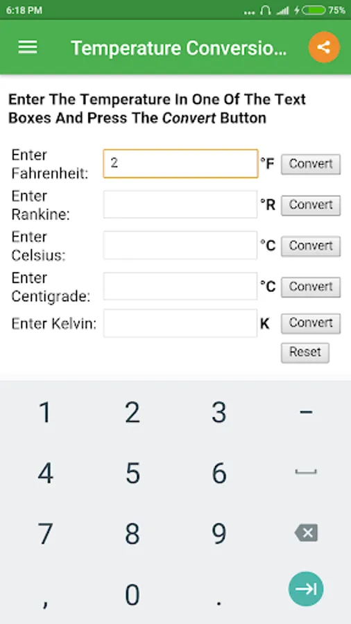 temperature calculator are displayed immediately with inputs being done via an in-built calculator for easier computations of complex problems.