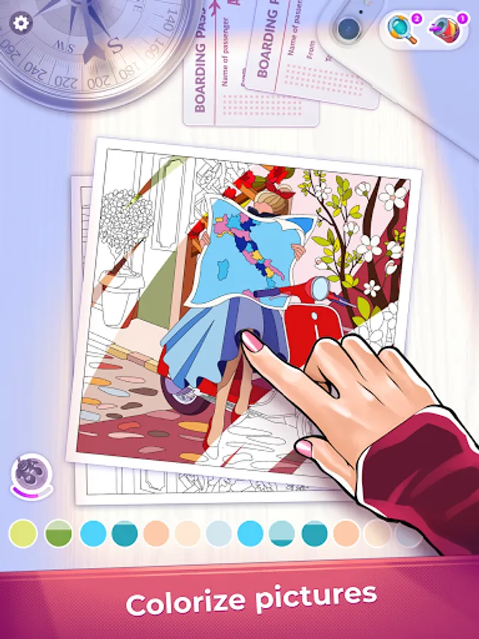 Emily’s Stories is not an ordinary drawing app or coloring book by numbers for adults, it is a full-fledged journey into Emily’s adventures through colored pages with interactive elements and puzzles.
