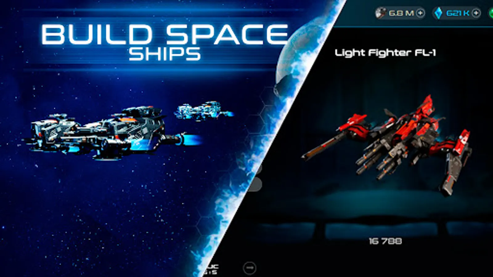 Xterium offers a modernization center where players can improve their warship craft and defense by completing contracts and sending their fleet for a unique revision. Talented craftsmen can add new types of combat weapons to ready-made ships, increase the recovery of shields, or add a double-shot and shield module, depending on the player's strategy. By studying attack, armor, and shields, players can increase the combat power of their spaceship.
