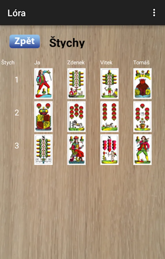 Honorované karty jsou v každé dílčí hře jiné. Například ve hře s názvem "Červené" se každý hráč snaží NEZÍSKAT do svého paklu žádnou červenou kartu, při hře "Filky" se hráči snaží NEZÍSKAT žádného filka atd. Dílčí hry se hrají v závazném pořadí, které aplikace řídí. Trestné body se zapisují a sčítají do protokolu. Vyhrává ten hráč, který získal po odehrání celého závazného souboru dílčích her nejméně trestných bodů.