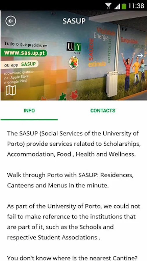 This App was designed to get to know the SASUP universe in detail. SASUP have a range of services and facilities that remain unknown to many people. We provide a set of useful information, accessible with just one click. Although SASUP are based in the Bragas Street, 151, their heritage is distributed almost everywhere in the city of Porto.