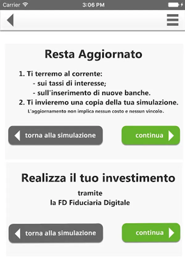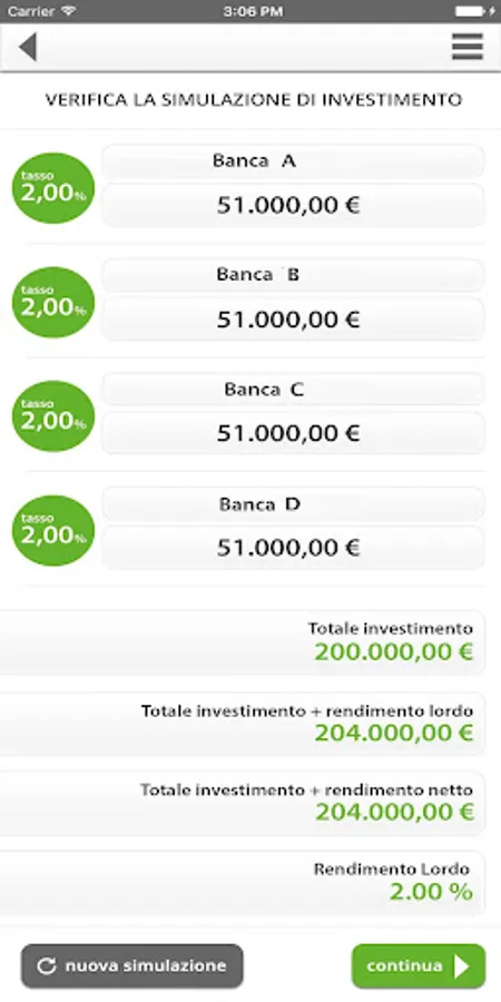 The app Fd Trust Digital that allows you to simulate a diversification of your funds in the current accounts and see the possible fruits without any commitment