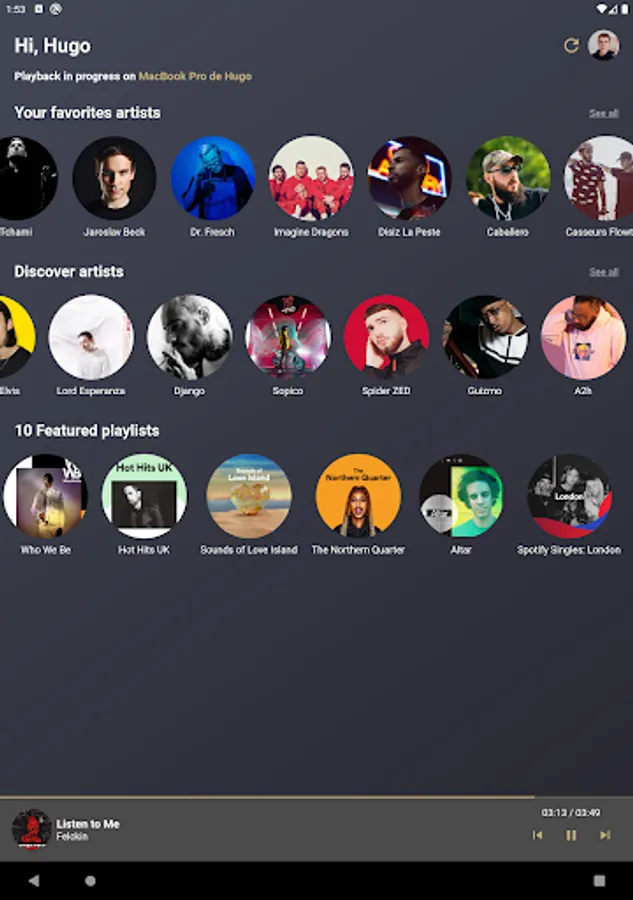 Freshify is an app that lets you see your favourite artists, discover new artists and lots of other features after logging in to your Spotify account.