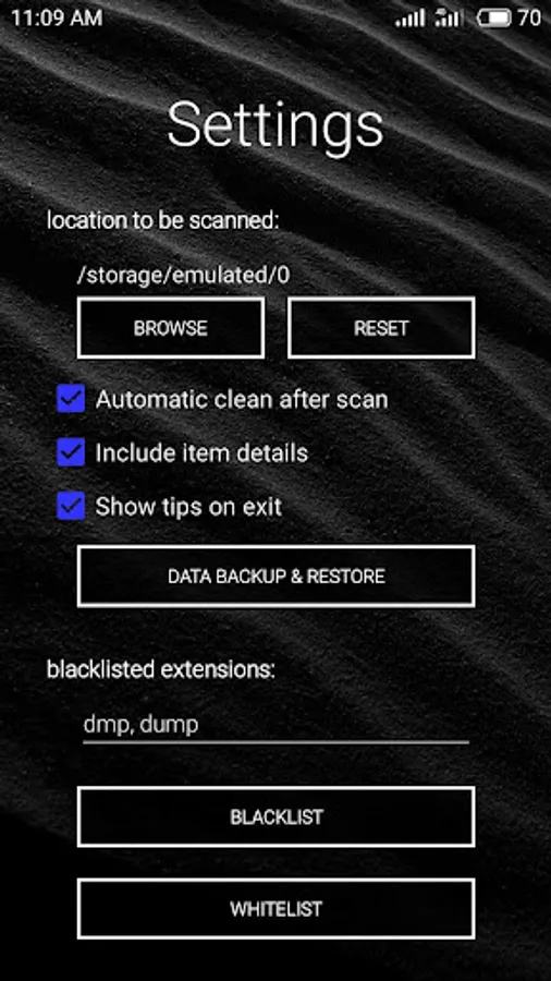 This feature is developed to backup all the data of Smart Clean including blacklist, whitelist, and preferences data.