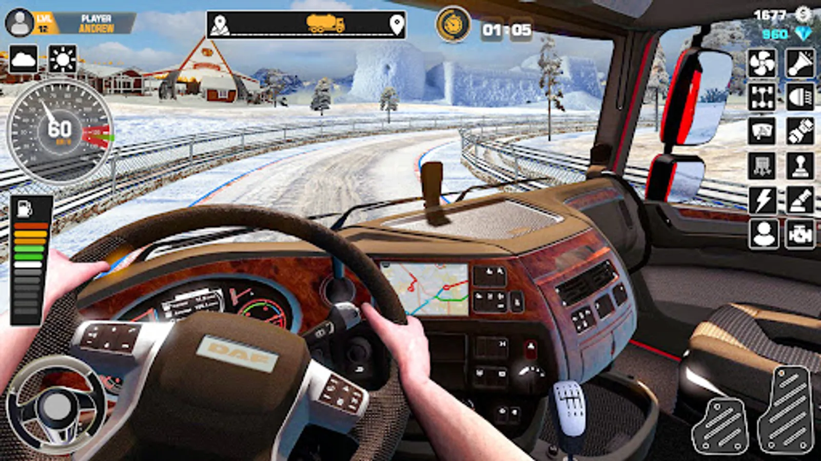 A hill truck driver has joined a cargo transportation company in Texas USA as heavy truck driver. Now he has to drive 18 wheeler heavy trucks for cargo transportation in this driving simulator. Driving heavy truck on roads is not an easy task here you have to face different weather climates like snow, raining and sunny. Become a champ of truck driver games. The truck driver has to face difficult road tracks because he has to drive 18 wheeler heavy American truck on snow mountains, Jungle tracks, big city road tracks and Deserts.