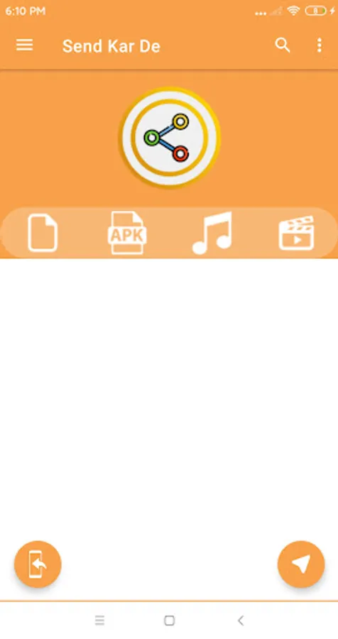 Share files from device to device without cables.No Internet ? No problem , you can share video,audio,photo,file with nearby friends.The Best feature of "Send Kar De" app is that you can share files separately or in a form of a bucket as well which includes Apps , videos , photos , music , office (PDF,docs) etc.