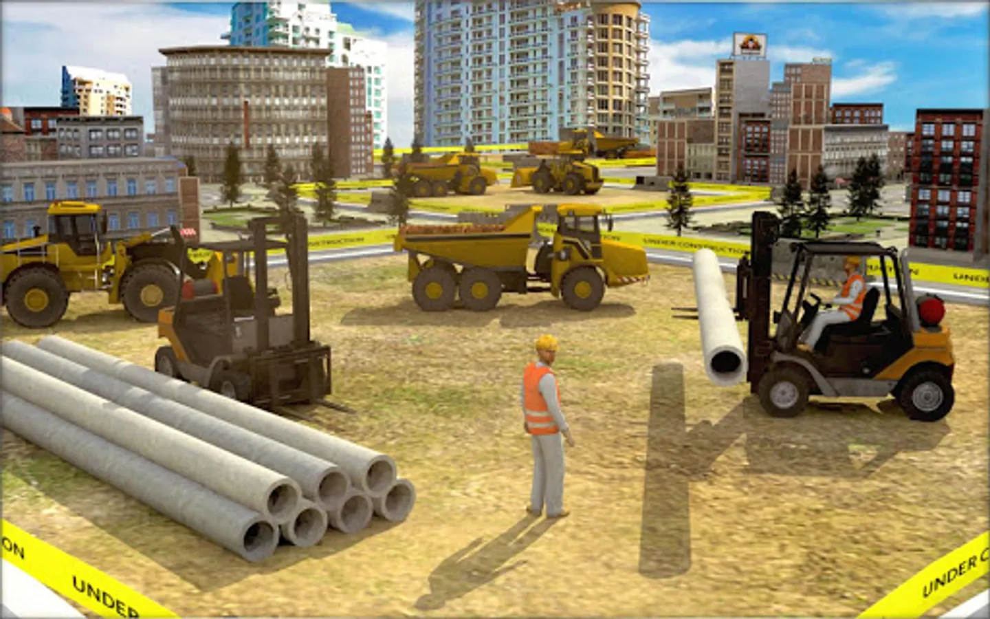 In City Construction: Building Simulator game Excavator cranes are digging the ground, fork lifters mobilizing huge sewerage pipes, cargo trucks loaded with sand, concrete, mixer machinery mixing concrete, Road rollers are compacting the ground. You’ve a lot of construction work for city building new mega city. Enjoy challenging construction simulator heavy machines driving tasks. Drive forklift, haul truck, bulldozer and excavator simulator in this real city construction game over other construction games. Complete your new city project within given time and drive heavy machinery and construction equipment back to the parking.