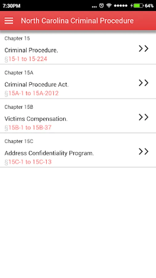 North Carolina Criminal Procedure (Chapter 15, Chapter 15A, Chapter 15B, Chapter 15C) app provides laws and codes in the palm of your hands.