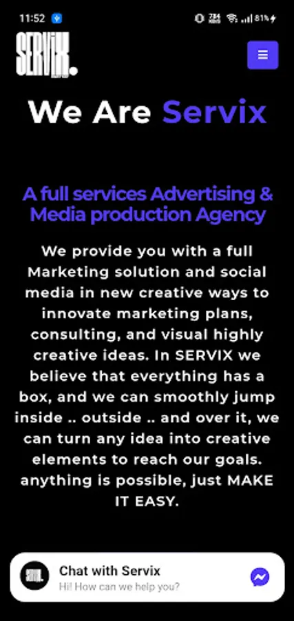 We provide you with a full Marketing solution and social media in new creative ways to innovate marketing plans, consulting, and visual highly creative ideas. In SERVIX we believe that everything has a box, and we can smoothly jump inside .. outside .. and over it, we can turn any idea into creative elements to reach our goals. Anything is possible, just MAKE IT EASY.