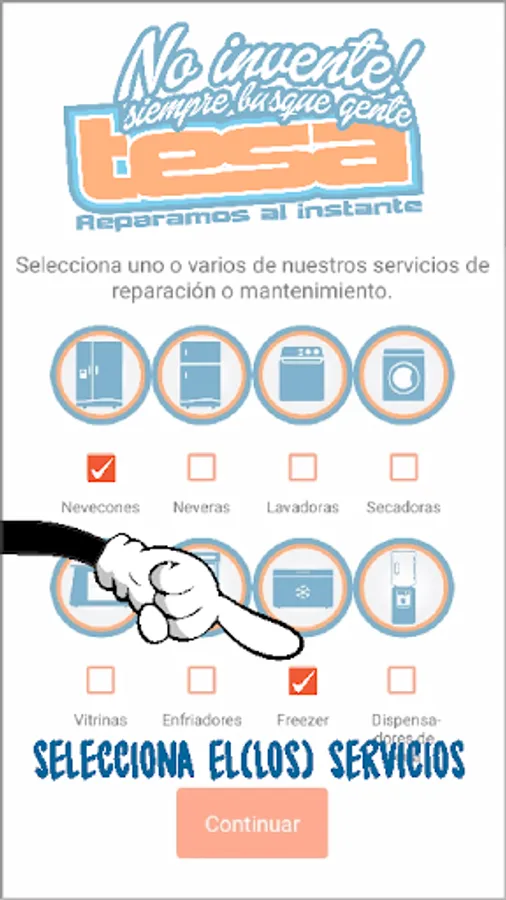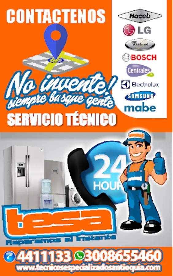 Instantly repair your Nevecones, Refrigerators, Washers, Dryers, Showcases, Coolers, Freezer, Water Dispensers in the department of Antioquia, you just have to enter your name, select the service (s) enter the address and contact information the municipality for a good service and press continue and your service is ready in minutes a TESA technician will communicate with you.