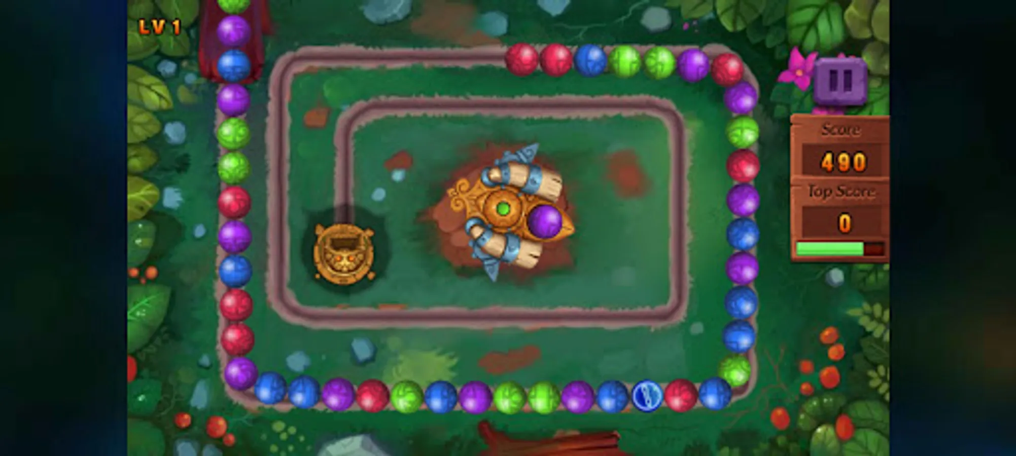 Your goal is to clear all the marbles before they reach the end of the path, and meanwhile, achieve Marbles and Combos as many as possible to get the highest score.