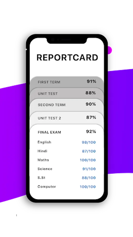 - Phone notifications for attendance, upcoming tests and extra-curricular events