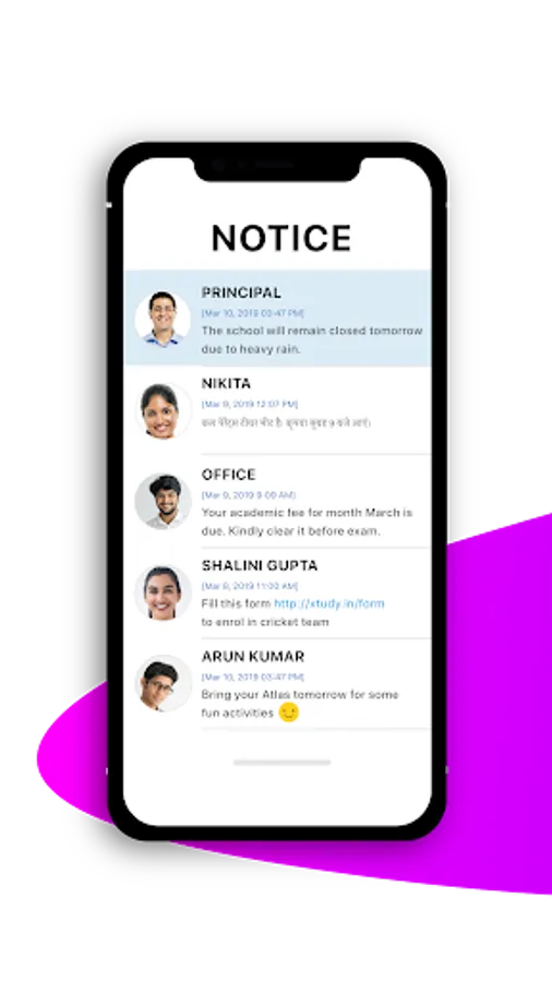 - Send phone notifications to parents for attendance, upcoming tests and extra-curricular events