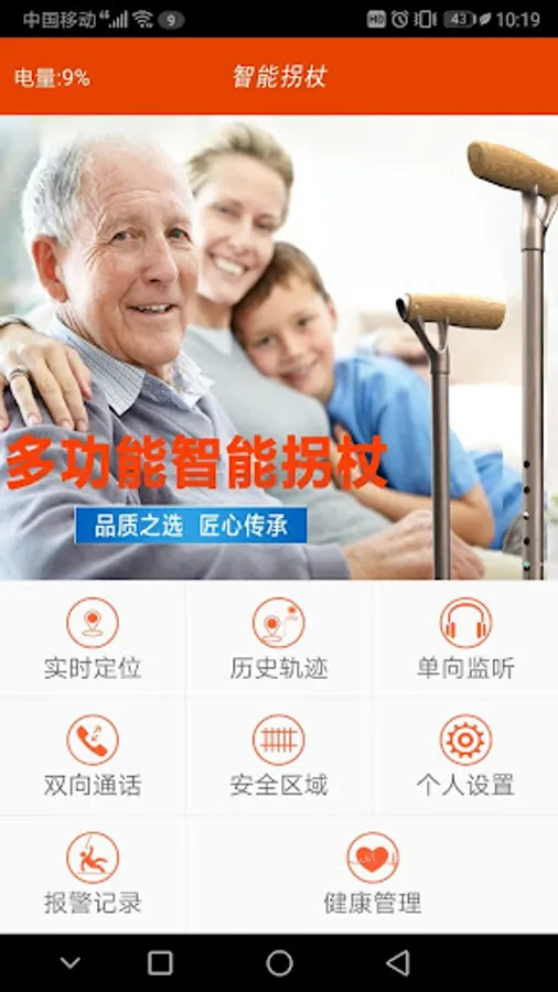 The app is equipped with a smart cane, an app that allows the user and the cane to make calls to each other. The user can also view the positioning information, heart rate, blood pressure and power of the cane on the map of the APP to prevent lost and searched. To help you better protect the safety of your family, suitable for the elderly and people who are inconvenience of the legs and feet.