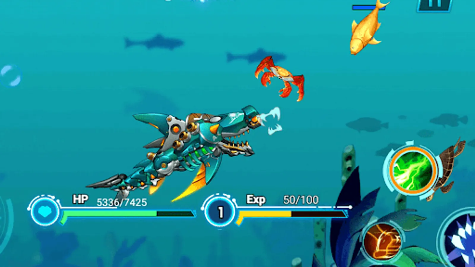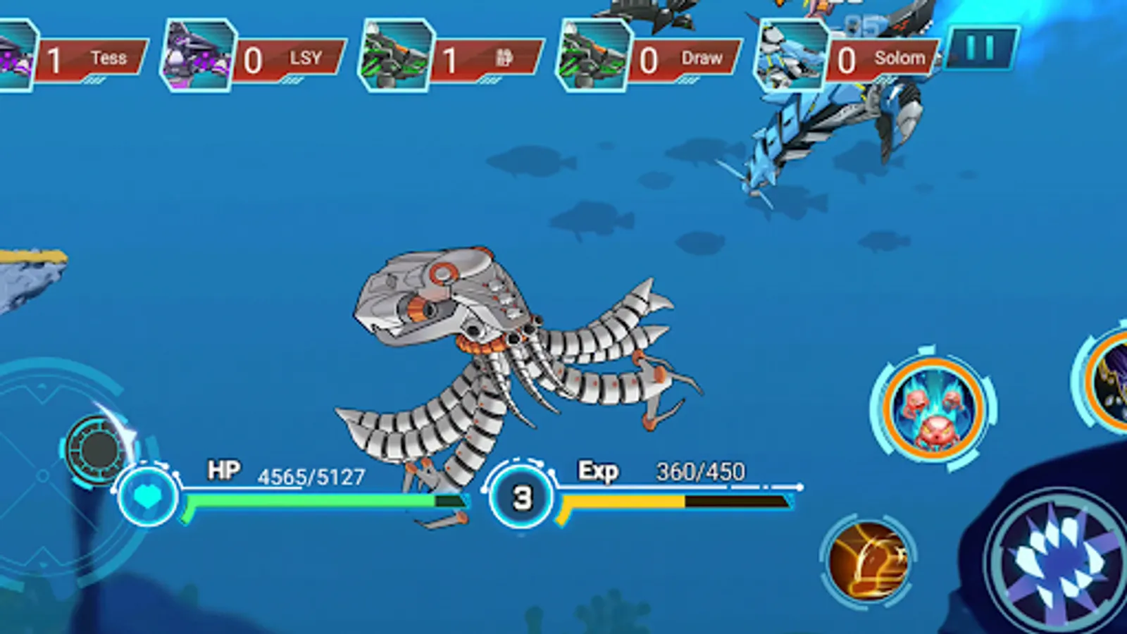 Take control a evolution mecha killer shark or a octopus to rule the ocean.Free to play.