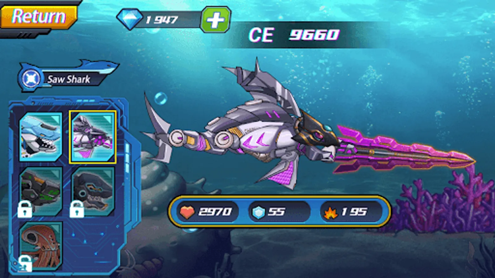 Explore a beautiful sea world and unlock rare sharks like the Megalodon and Hammerhead Shark!