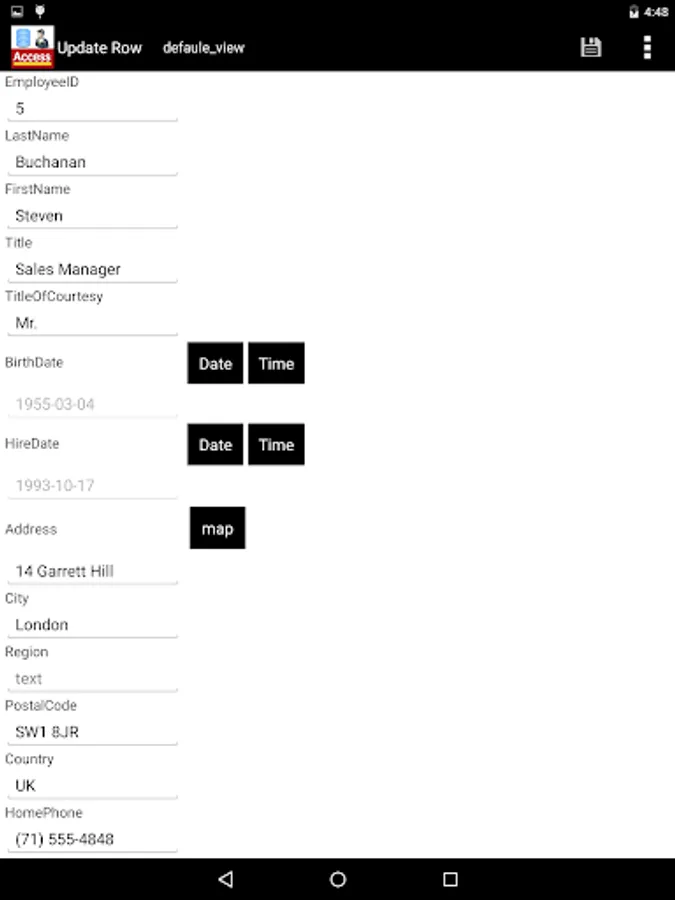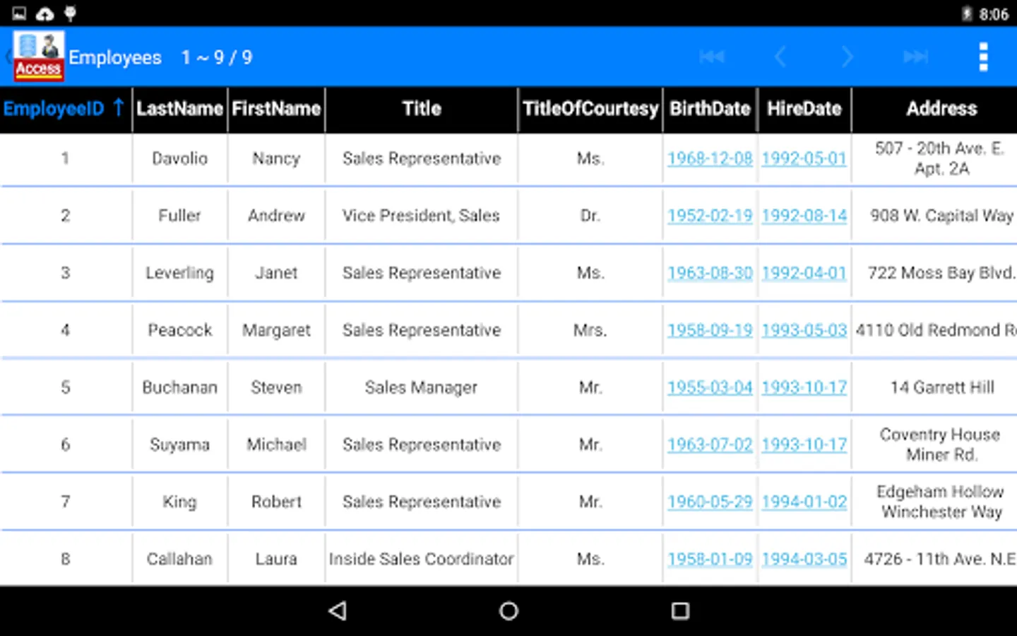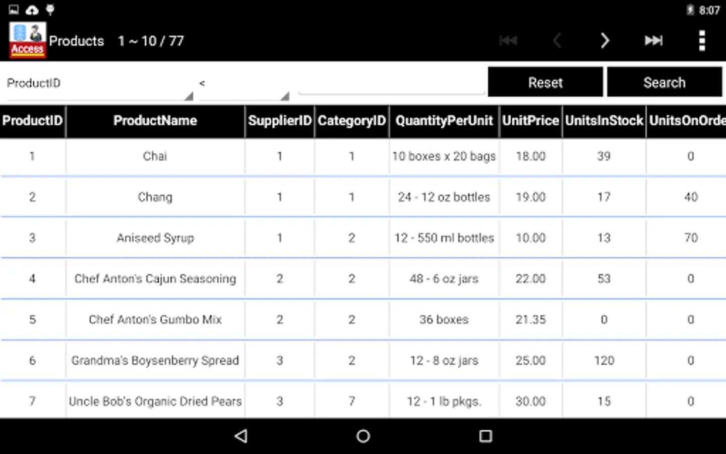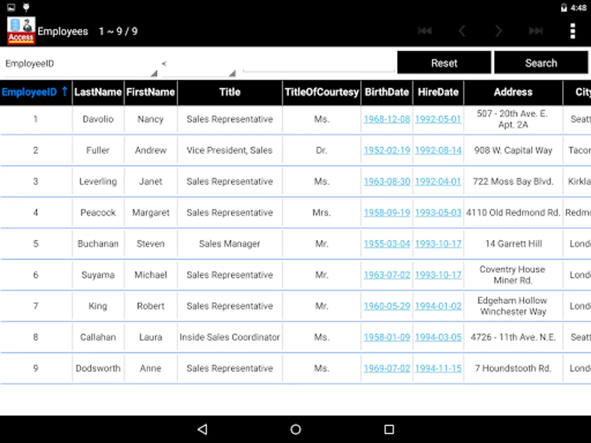 Open Microsoft Access database on your Android Device with Access Database Manager Pro, you can view it easily with Zoom, Sort and Paging, edit it directly on your Android phone or pad. There's no need network or import process to open Access database with this App, just works natively with your device.