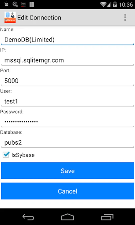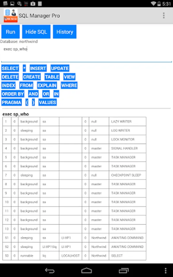 Manage MS SQL Server or Sybase ASE Database Server on your Android devices, features: