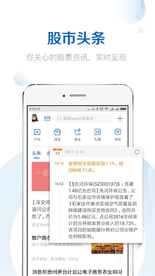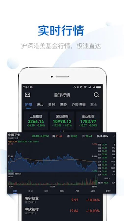 - Quick and complete real-time stock quotes, A shares / Hong Kong stocks / US stocks, New Third Board, funds, etc.