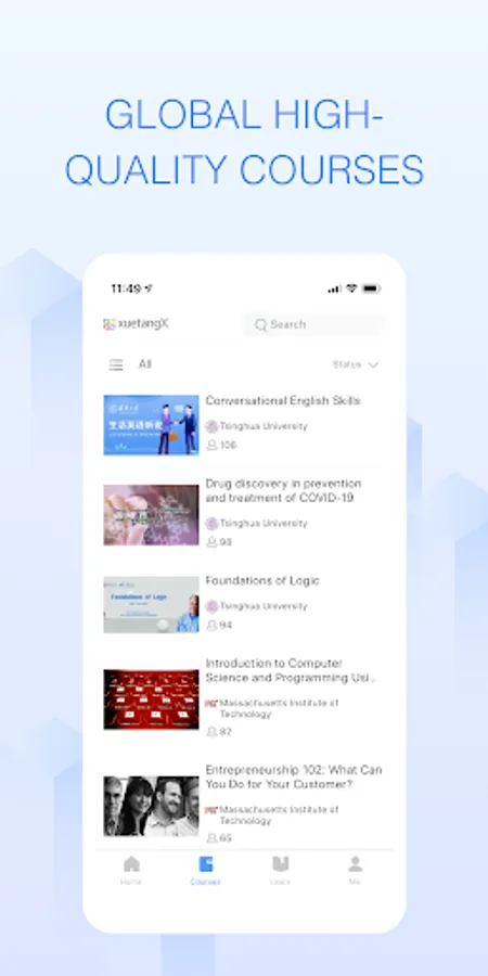 xuetangX is an application that allows students to take MOOCs (Massive Open Online Courses) using Android devices. After installed, the app allows students to browse, signup, and take the MOOCs hosted on http://www.xuetangx.com. The MOOCs include ones from top ranked Chinese universities such as Tsinghua University and Peking University. They also include ones from MIT, Harvard, Berkeley and other world top ranked universities in edX consortium (http://edx.org).