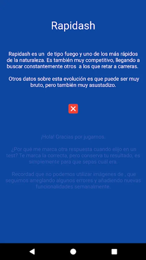 The creator of this application disclaims all liability related to infringement of copyright rights by The Pokémon Company, as well as Nintendo. The content of the characters that appear in the application is based on work done by and for fans only, as well as descriptions whose context is personalized and for which only the author, that is, the creator of the application, owns the intellectual rights .
