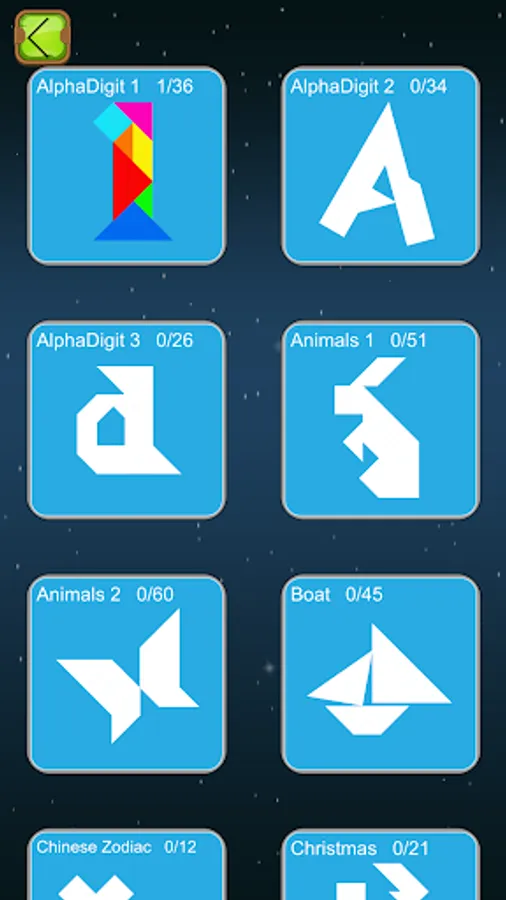 In this game, we provide hundreds of puzzles in various categories, including animals, human, alphabet, digit, boat, geometry, building, zodiac, Chinese zodiac and other stuff.