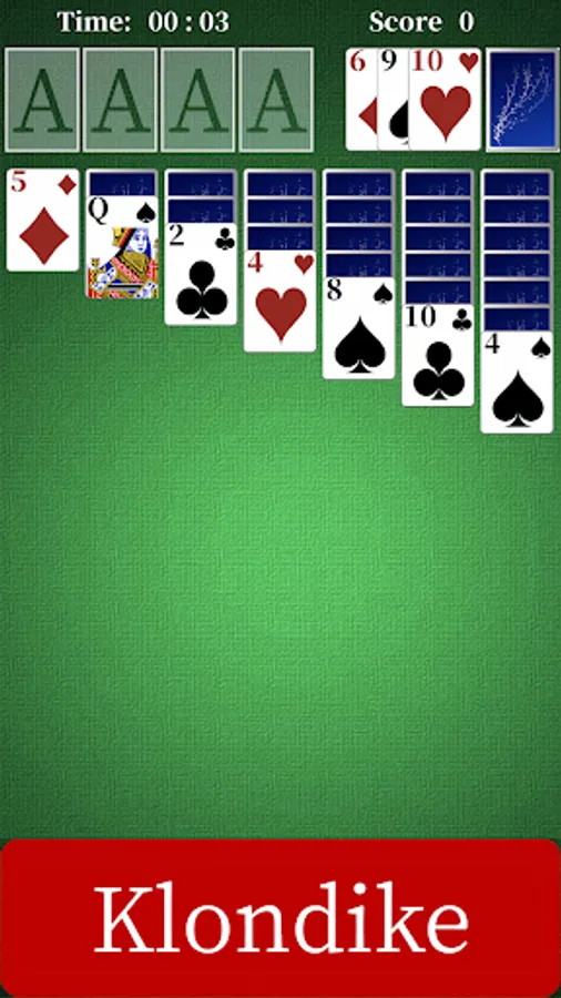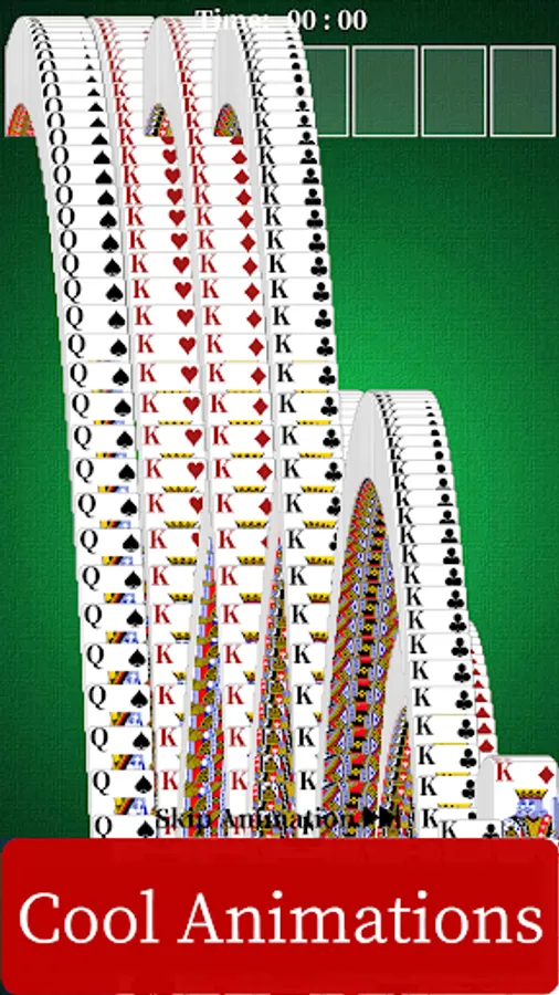 3 game difficulties: 1 suit, 2 suits, 4 suits