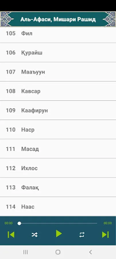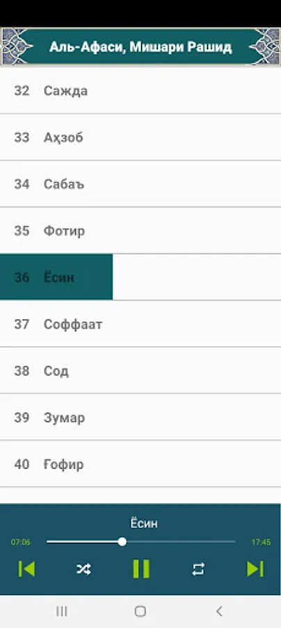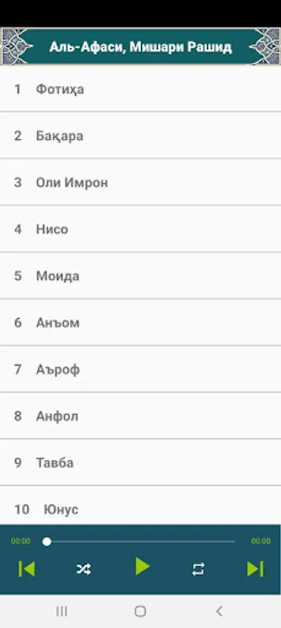 Ушбу дастур ёрдамида сиз Аль-Афаси, Мишари Рашид-дан 30 пора Қуронни тўлиқ ҳолда тинглаб бахра олишингиз мумкин.