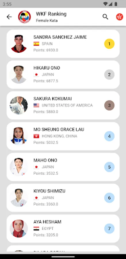 Kata and kumite champions with the best wkf ranking. Enjoy their biographies, videos, winners, live results.