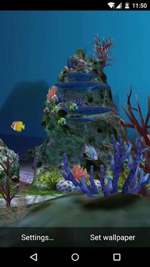 Colorful 3D fishes, beautiful background of sea corals and animated air bubbles make "3D Aquarium Live Wallpaper HD" even better than the real aquariums! In this amazingly realistic aquarium background wallpaper, dozens of different exotic fishes are swimming on a background of colorful sea corals, plants and beautiful sunrays.