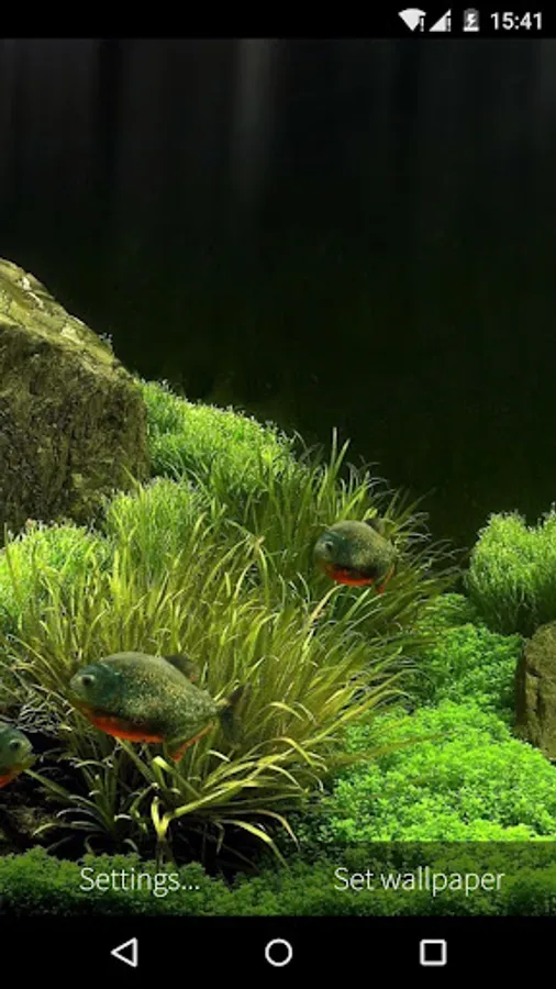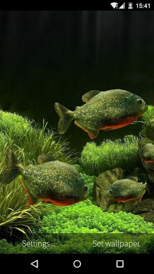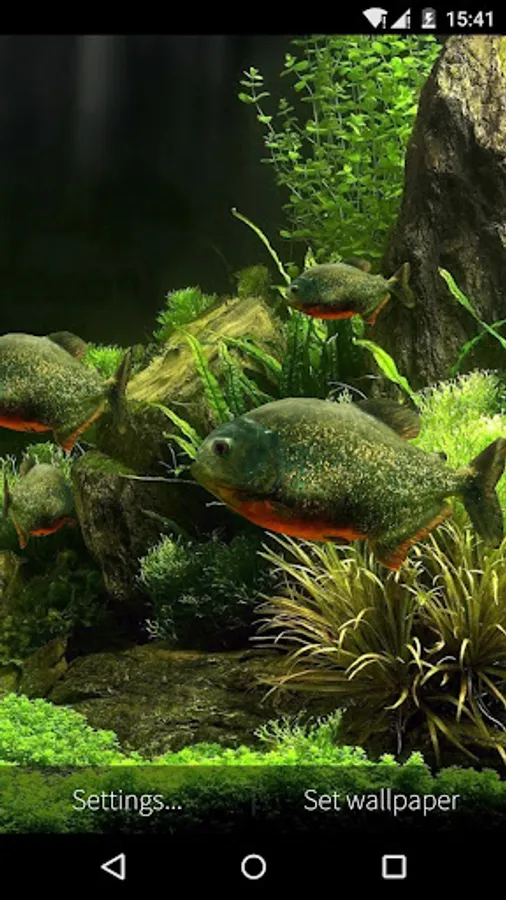 Featuring with real animated piranha fishes swimming on an amazingly beautiful background of realistic rocks and green aquatic plants, this breathtaking new aquarium live wallpaper will make you might feel that you are visiting a fish aquarium of cool piranhas in real. And you can take a close look at the piranhas’ sharp teeth and their beautiful bodies. When swiping your phone screen left and right with fingertips, you will also see the background is also moving and there are more piranhas swimming in this naturally beautiful aquarium. Get this free but cool 3D Fish Aquarium Live Wallpaper HD app now, and the mysterious piranha fishes will swim on your phone screen, making your phone background a beautiful and realistic aquarium. If you like this hd fish aquarium wallpaper, you can also share it with your friends via various social networks like Facebook, G+ or Twitter and so on.