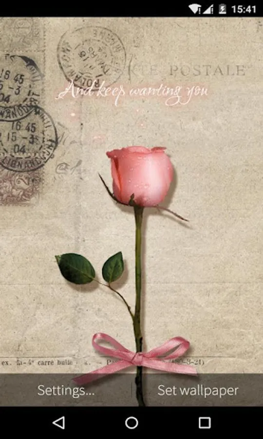Rose And Poetry HD Live Wallpaper is an amazing wallpaper that includes a rose with the pink bowknot on the screen which also use the old envelope as a background.