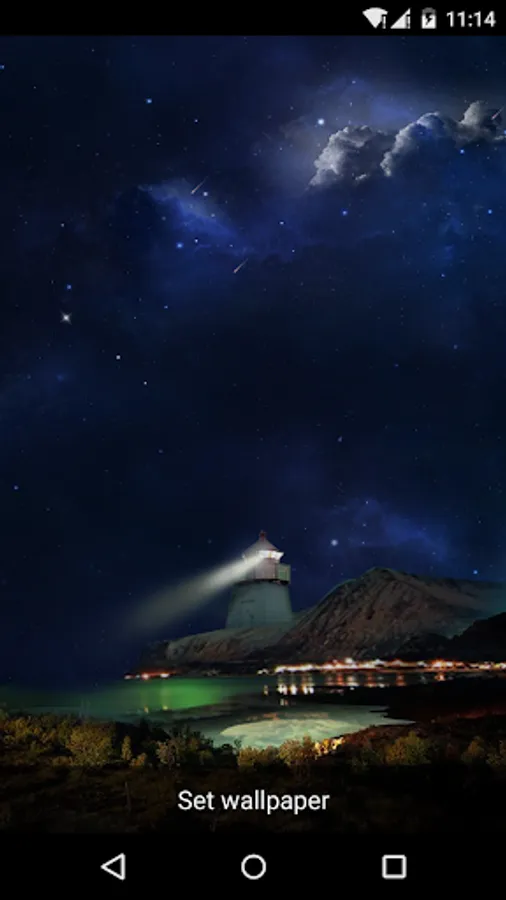 Amazing Aurora Live Wallpaper is a fantastic background which brings you to the remote polar region where the sky is full of bright stars at night. Despite the coldness, there is still a small flowing river surrounded by some small mountains. And on the bank of it stands a light tower. When shaking your phone slightly, you will see a steady light beaconed from the tower. And if starring at the sky, you can also see beautiful green aurora as well as a few shooting stars. Have you already been fascinated by this amazing polar scene? Touching the screen, you can even create shining starlight with fingers.