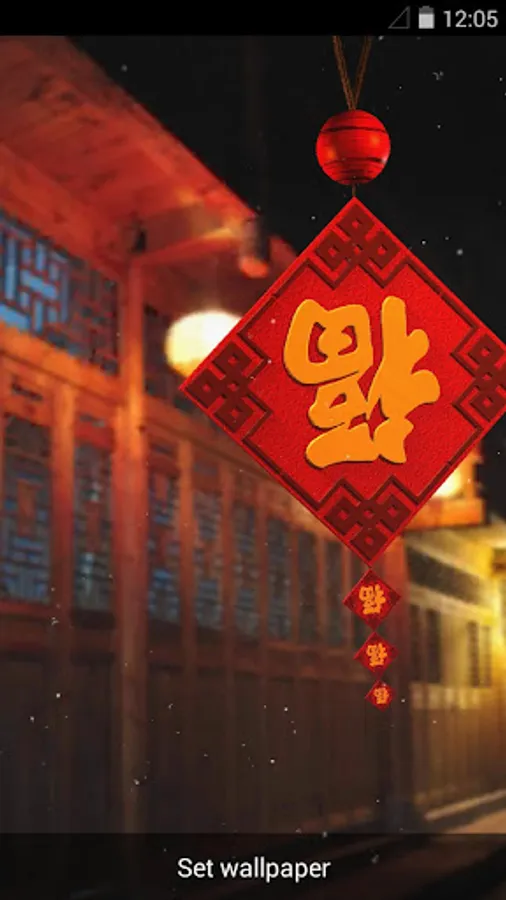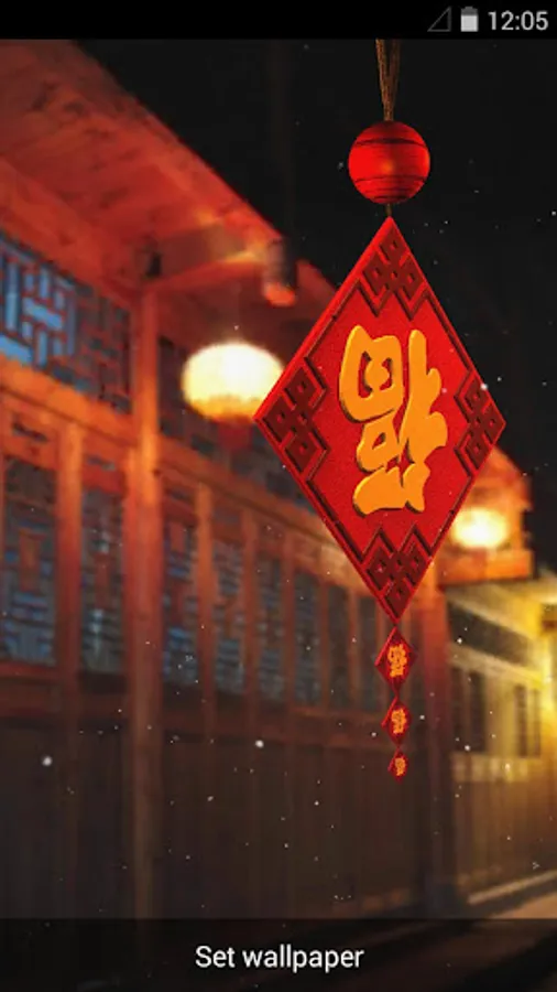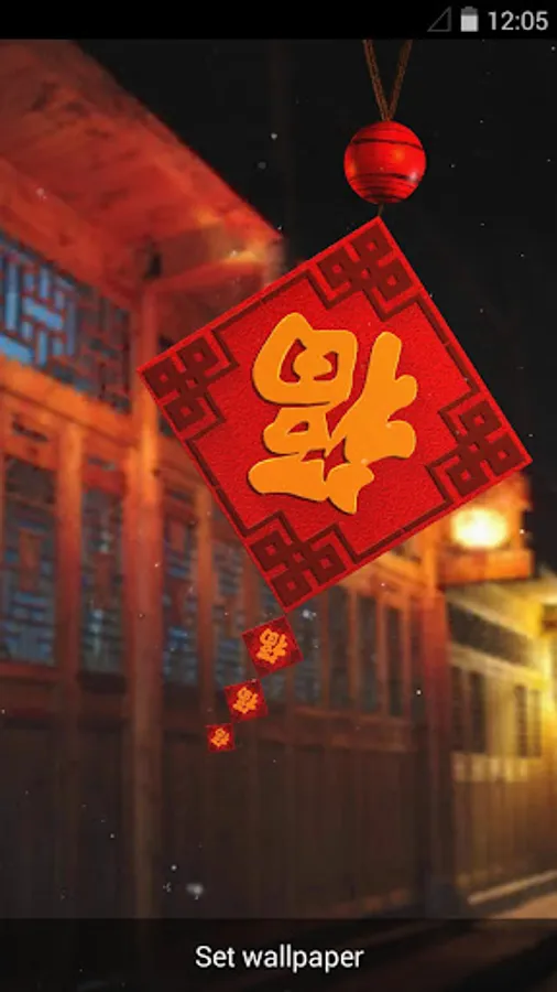 When seeing a traditional Chinese house with a red lantern hung under its roof and a Chinese character “Fu(福)” decoration hung upside down as they are shown in this Blessing 3D Live Wallpaper, do you understand what’s the meaning? Yes, it means the Chinese New Year is on the way. The big red Chinese character “Fu” has been hung upside down as a Chinese New Year tradition because hanging it that way means in Chinese language ”Fu Dao(福到)” which literally means luck arrives or comes.