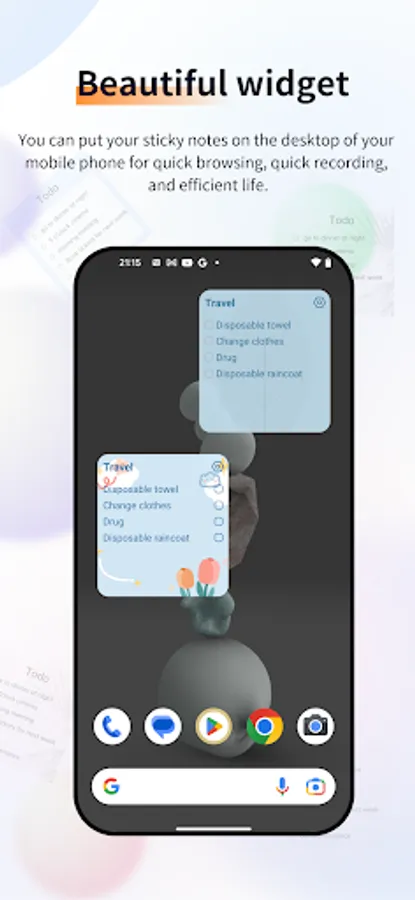 You can put your sticky notes on the desktop of your mobile phone for quick browsing, quick recording, and efficient life