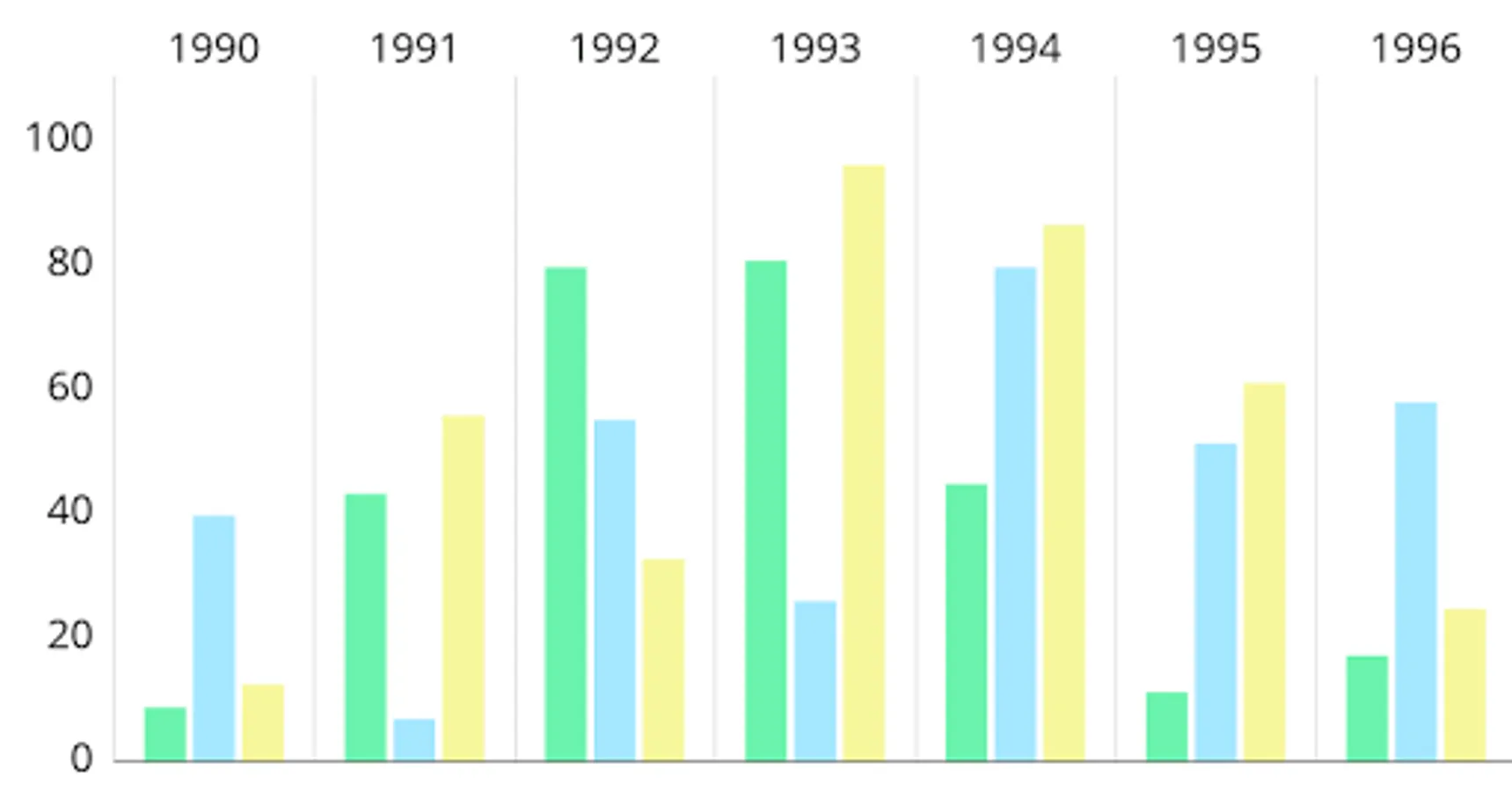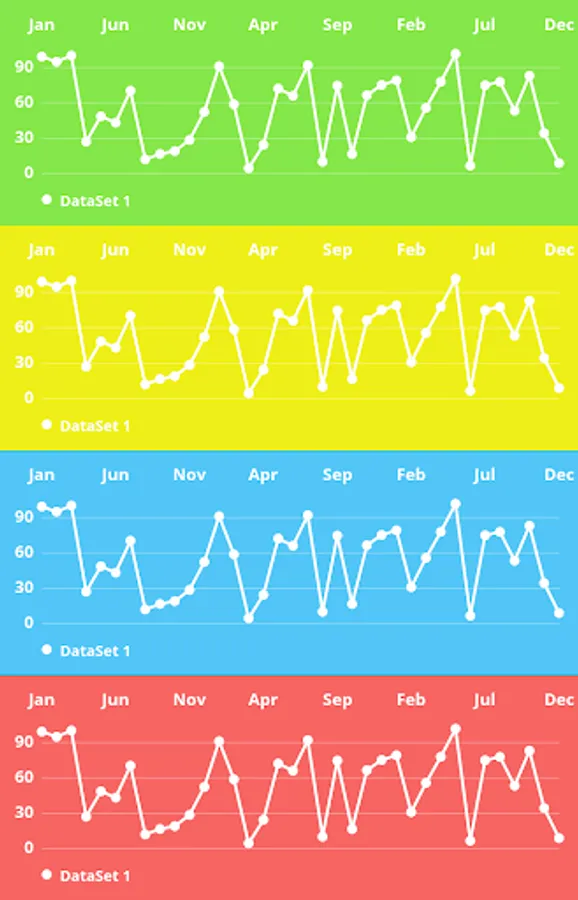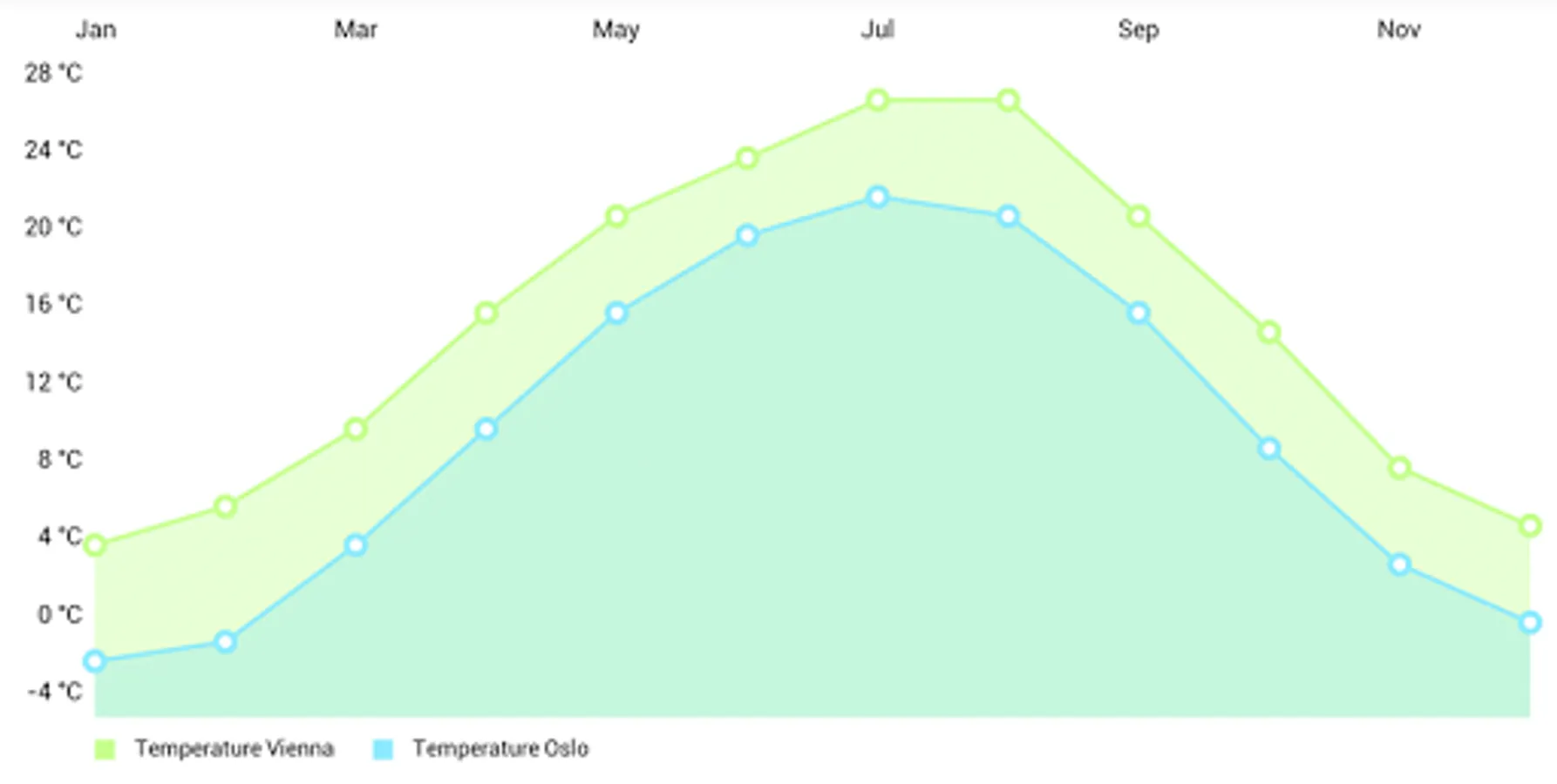 - Many different chart types: LineChart, BarChart (vertical, horizontal, stacked, grouped), PieChart, ScatterChart, CandleStickChart (for financial data), RadarChart (spider web chart), BubbleChart