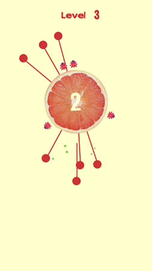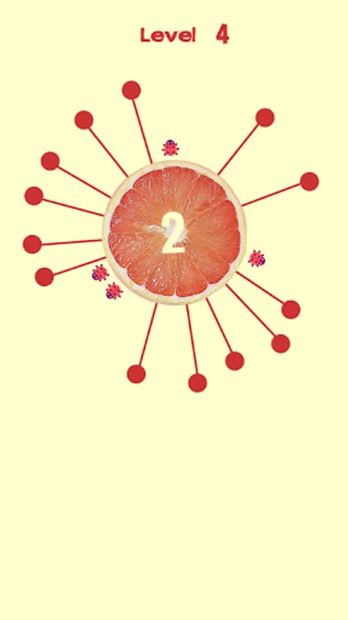 A rotation Grapefruit in the center, some radiant needles surrounding it, players need to launch radiant needles to the rotation Grapefruit one by one, but must not touch others and worms.